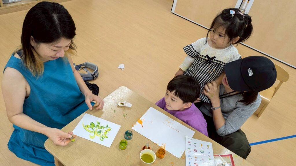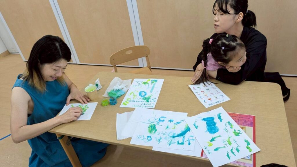 親子で花文字用のペンを手に取り、好きな色や模様を選びながら、世界にひとつだけの“花文字アート”を完成させました🌸